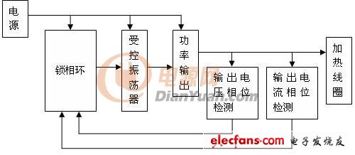 目前電磁加熱產(chǎn)品頻率和相位跟蹤主要可分為兩類;一類是依靠純硬件鎖相環(huán)實(shí)現(xiàn),系統(tǒng)框圖如下: